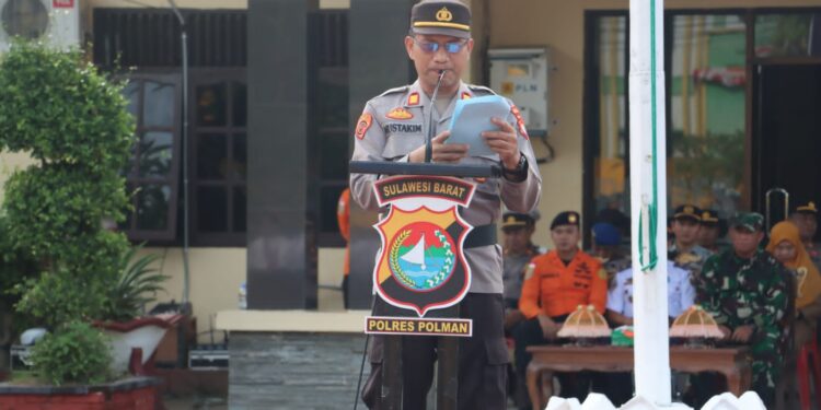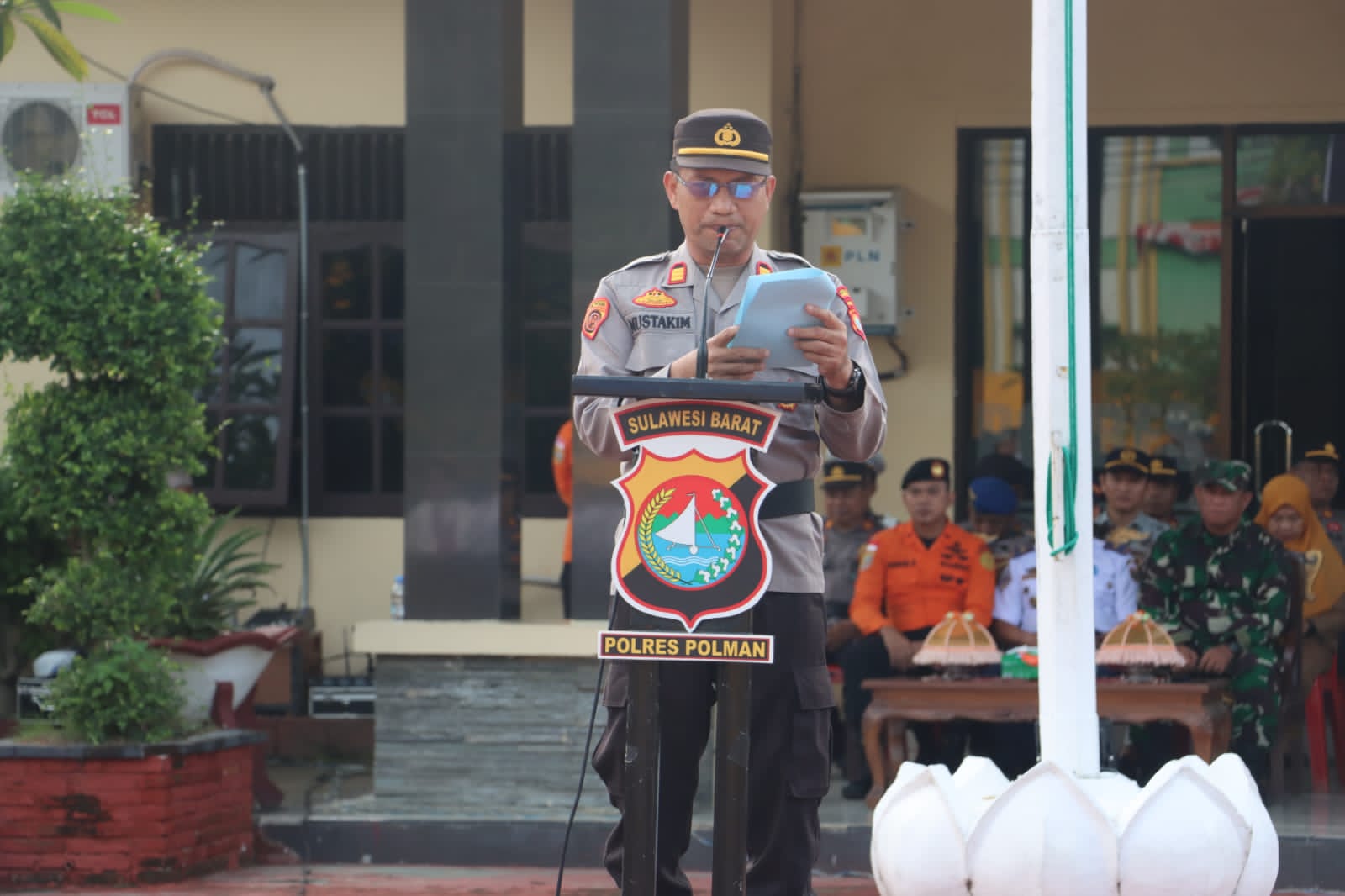 Bertindak selaku Pimpinan Apel yaitu Kabag SDM Polres Polman Akp Mustakim, Komandan Upacara Kanit Gakkum Sat Lantas Polres Polman Ipda Sofyan.