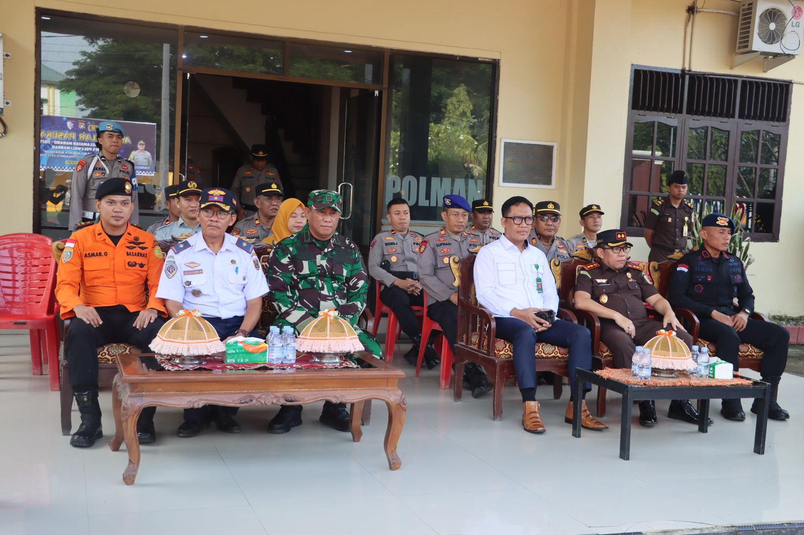 Kegiatan ini dihadiri oleh Kejari Kabupaten Polman Jendra Firdaus, SH., MH., Mewakili Dandim 1402 Polman Pasi Intel Kodim 1402 Polman Kapten Inf Ahmad Yani, Mewakili Danki 4 Yon A Pelopor Sat Brimob Polda Sulbar Ipda Ilham, Ketua Pengadilan Negeri Polewali Jusdi Purmawan, S.H.,M.H., Kepala Unit SAR Siaga Kabupaten Polman Asmar Gunawan, Kadis perhubungan Aco Djamaluddin, Para Kabag dan Kasat Polres Polman, Para Kapolsek Jajaran Polres Polman, Para PJU Polres Polman, Pers TNI, Pers Brimob, Pers Sat Sabhara, Gabungan staf, 1 Pleton Pers Bhabinkamtibmas, Pers Lalu lintas, gabungan Intel Reskrim, Satpol PP, Dishub Polewali Mandar dan Senkom.
