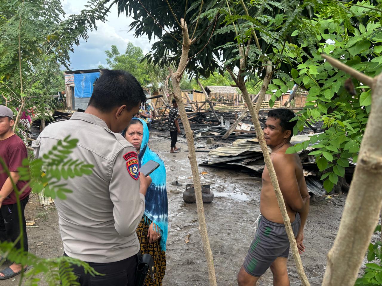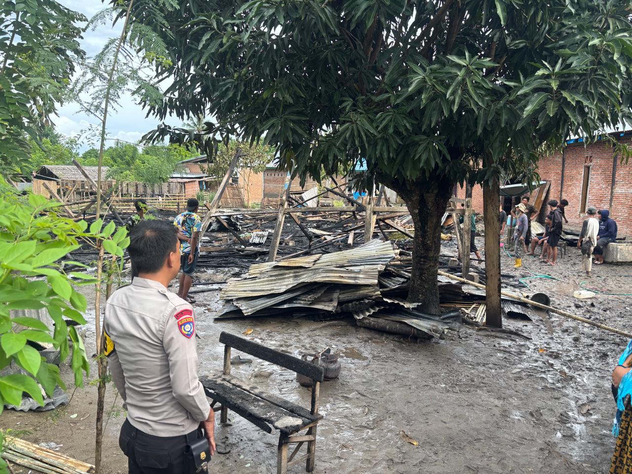 Petugas Polsek bersama tim pemadam kebakaran segera menangani kejadian tersebut dan memastikan tidak ada lagi titik api yang membahayakan warga sekitar.