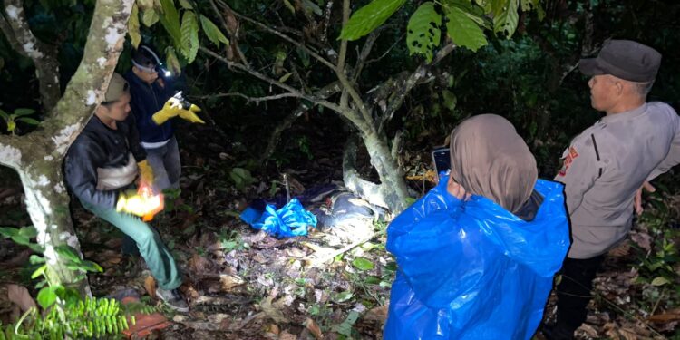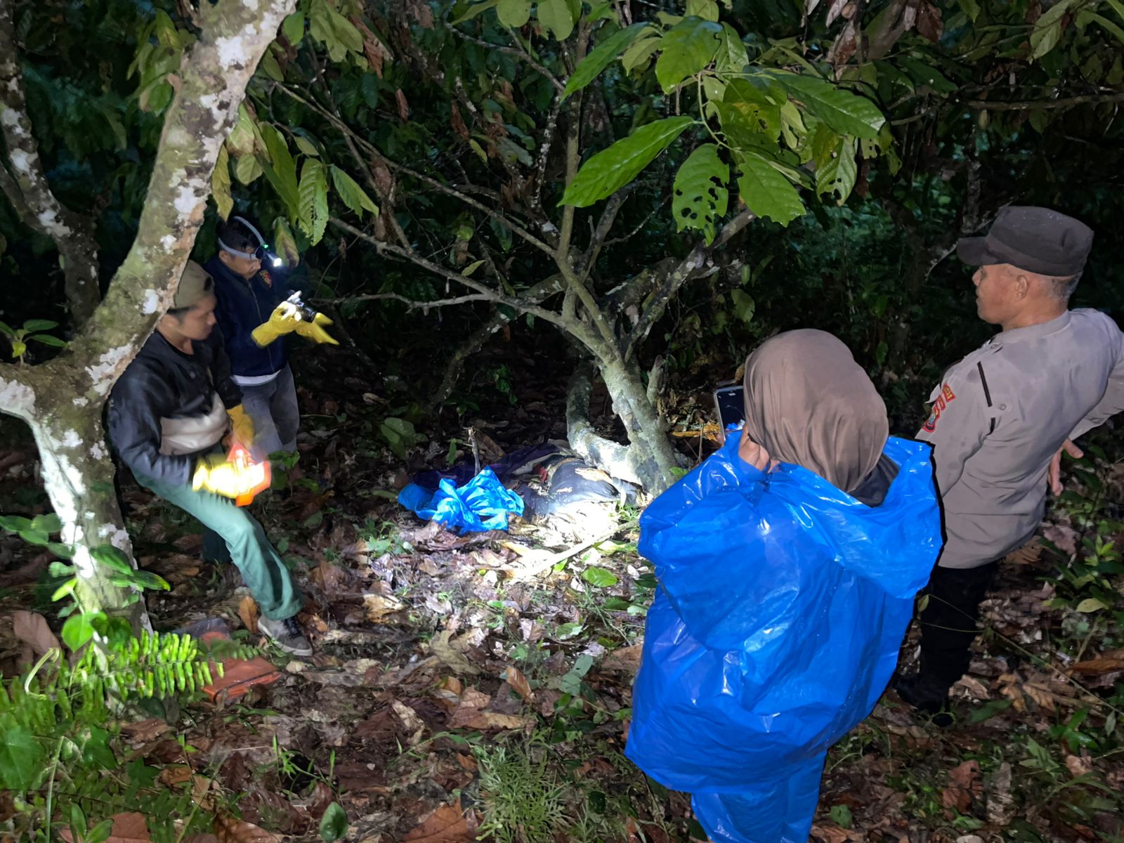 Perisaijurnalis.com, Polman – Personel Polsek Wonomulyo bersama tim dari Polres Polman mengevakuasi sesosok mayat yang ditemukan di area kebun coklat di Desa Pulliwa, Kecamatan Bulo, Kabupaten Polewali Mandar, Provinsi Sulawesi Barat, Kamis (11/09/2025).