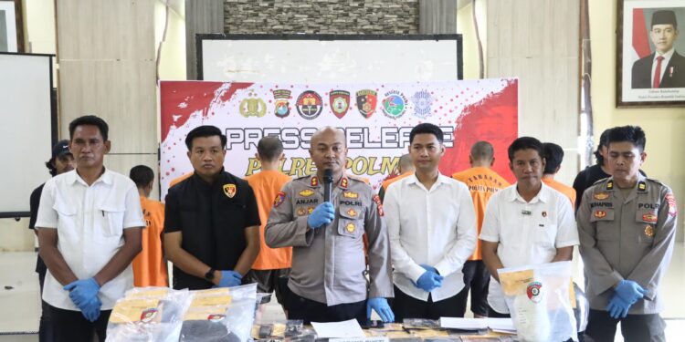 Kegiatan press release berlangsung di Aula Rupatama Polres Polman, Senin (3/10/2025).