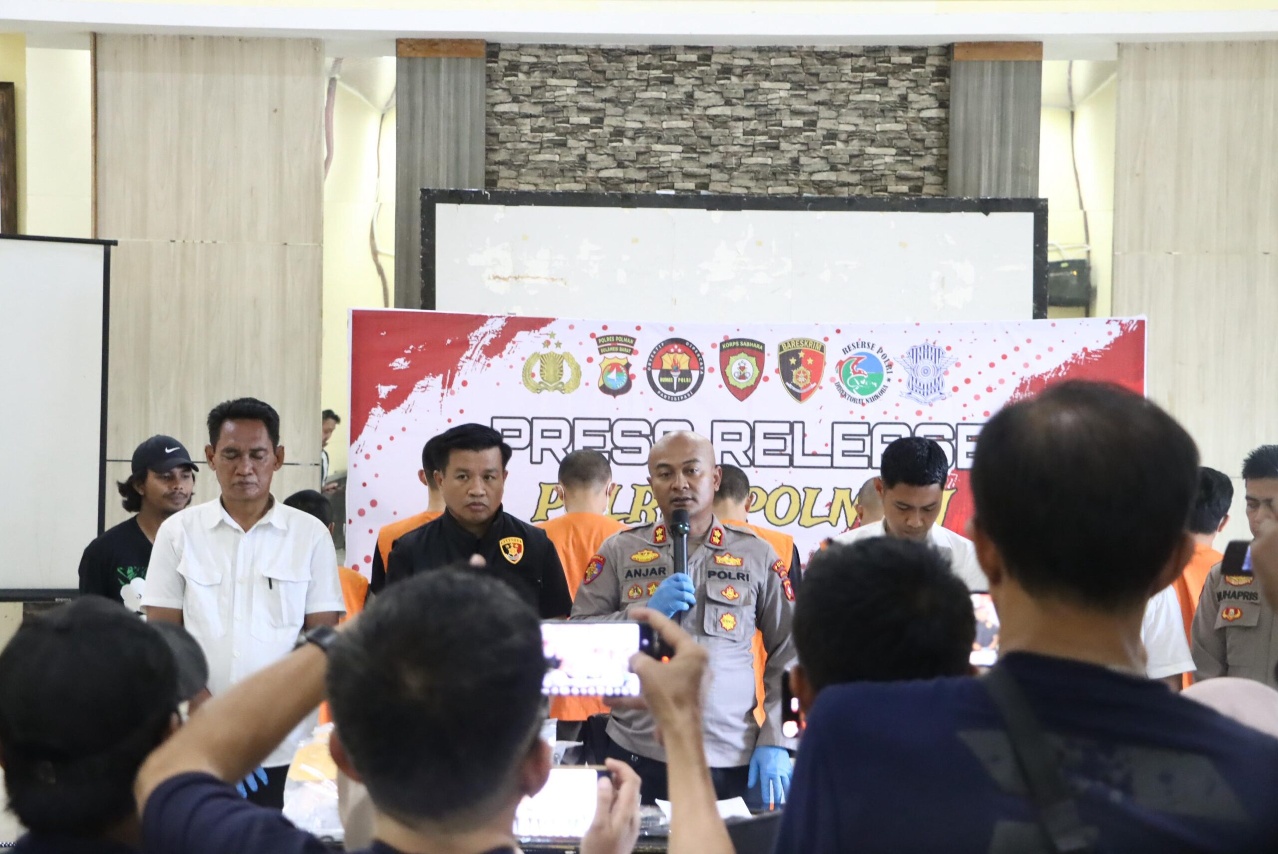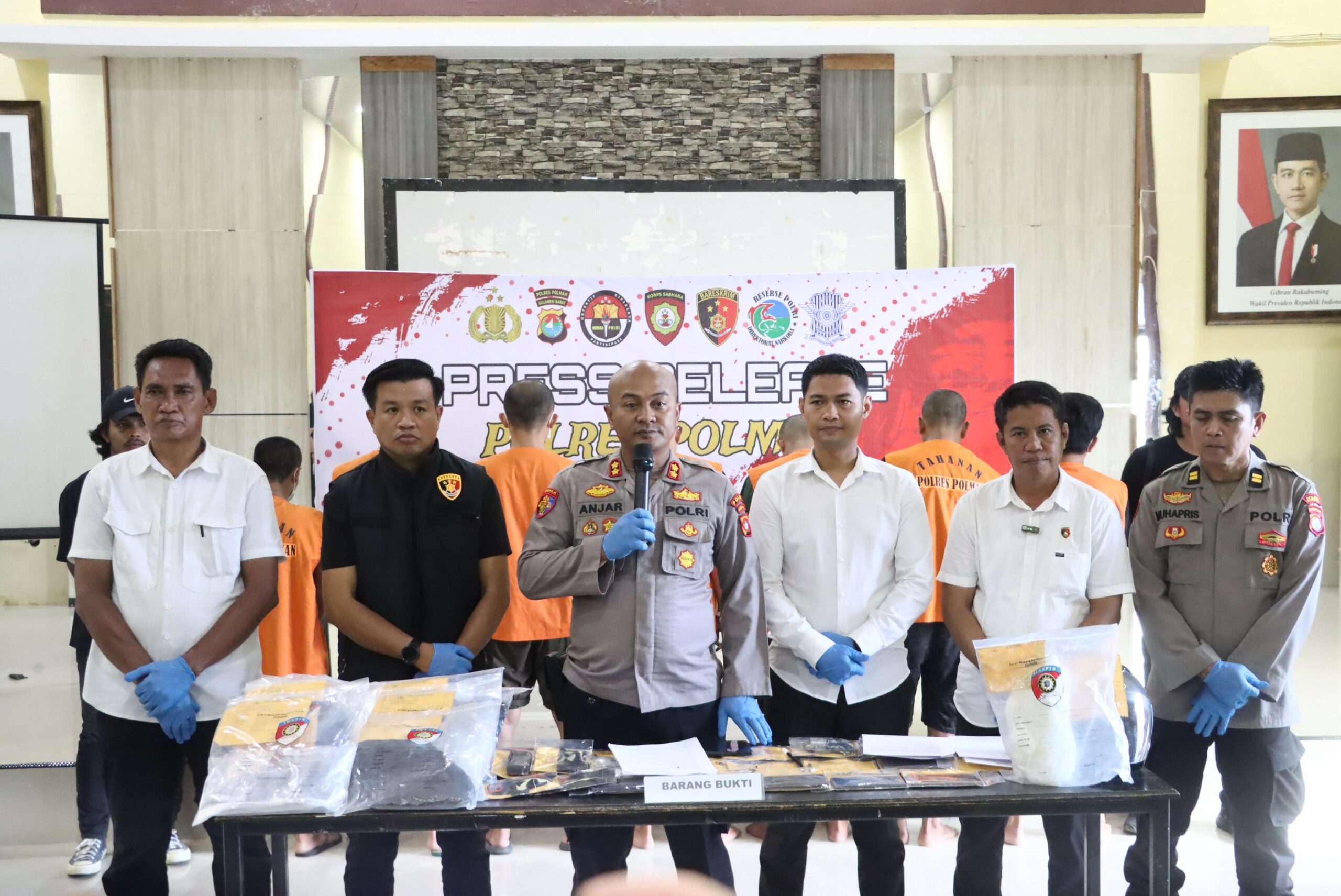 Kegiatan press release berlangsung di Aula Rupatama Polres Polman, Senin (3/10/2025).