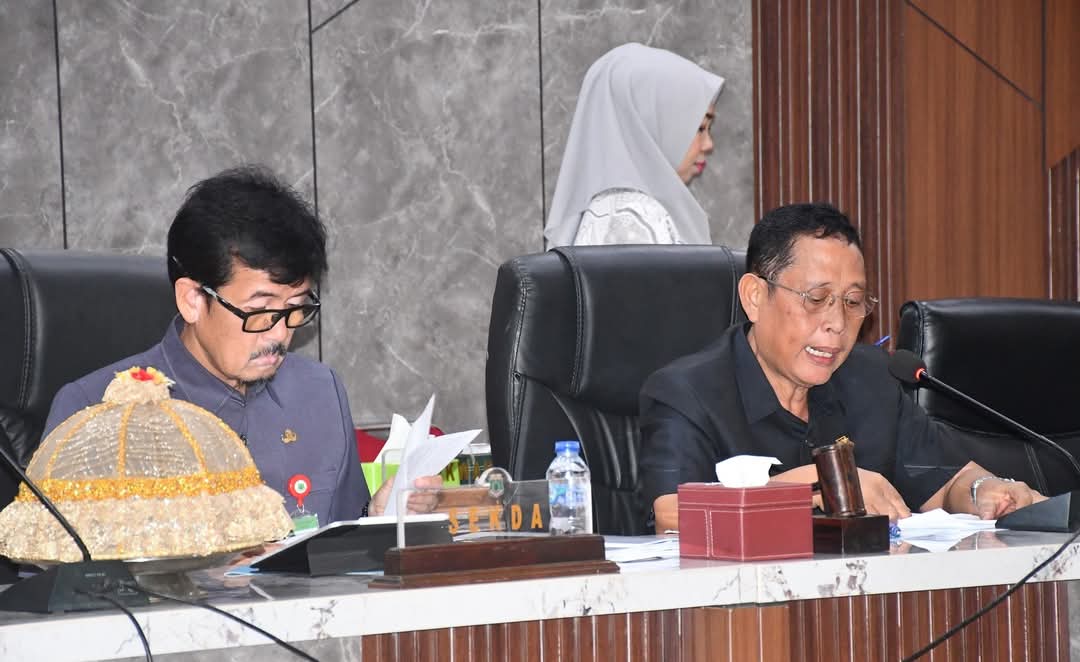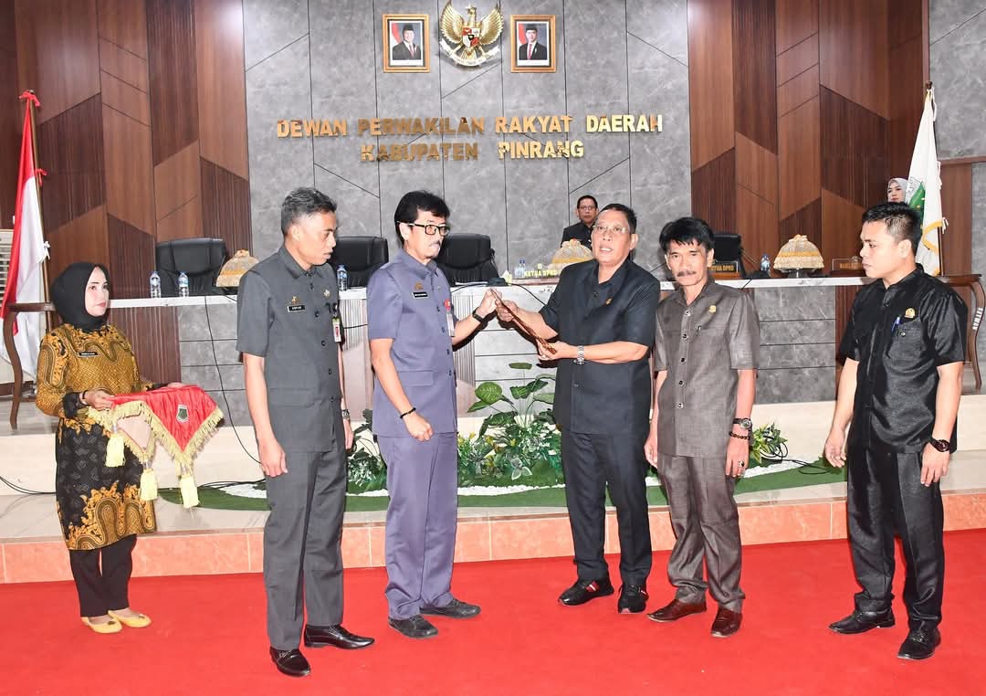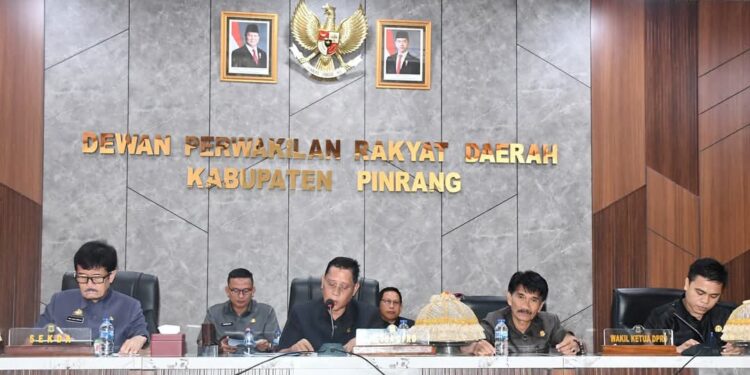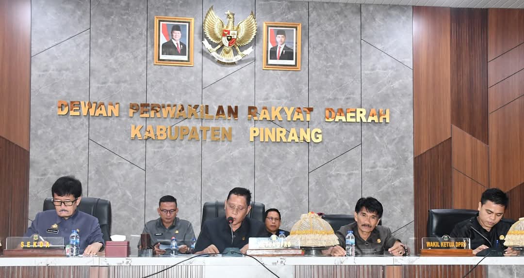 Rapat paripurna tersebut dipimpin langsung Ketua DPRD Pinrang, H. Nasrun Paturusi didampingi Wakil Ketua I DPRD Pinrang Ir. Syamsuri dan Wakil Ketua II DPRD Pinrang, Sakkairfandi, dihadiri anggota DPRD Pinrang lainnya dari 6 fraksi. Turut dihadiri Sekda Pinrang, A. Calo Kerrang, SP.,M.Si, Sekwan Pinrang, H.A.Pawelloi Nawir, S.Sos.,M.Si, Kepala BPKPD Pinrang, Agurhan, SE.,MM, Kepala Bappelitbanda, A.Fakhruddin, S.Sos.,M.Si dan Kabag Hukum Setda Pinrang, Yosep Pao, SH, Jumat, (28/02/2025), pukul 10.00 wita, bertempat di ruang rapat paripurna.