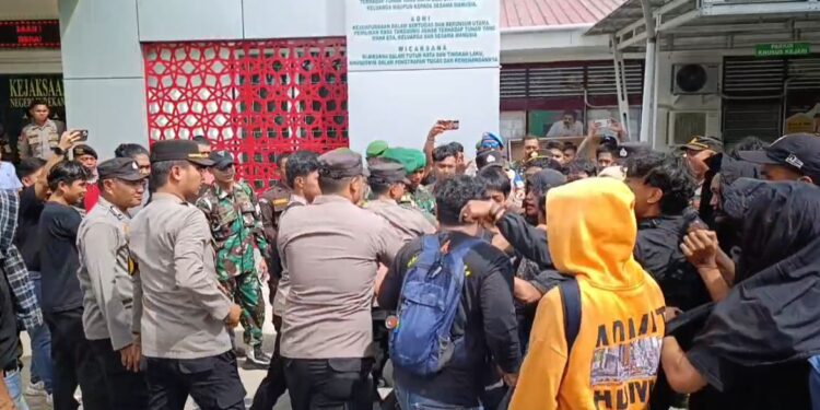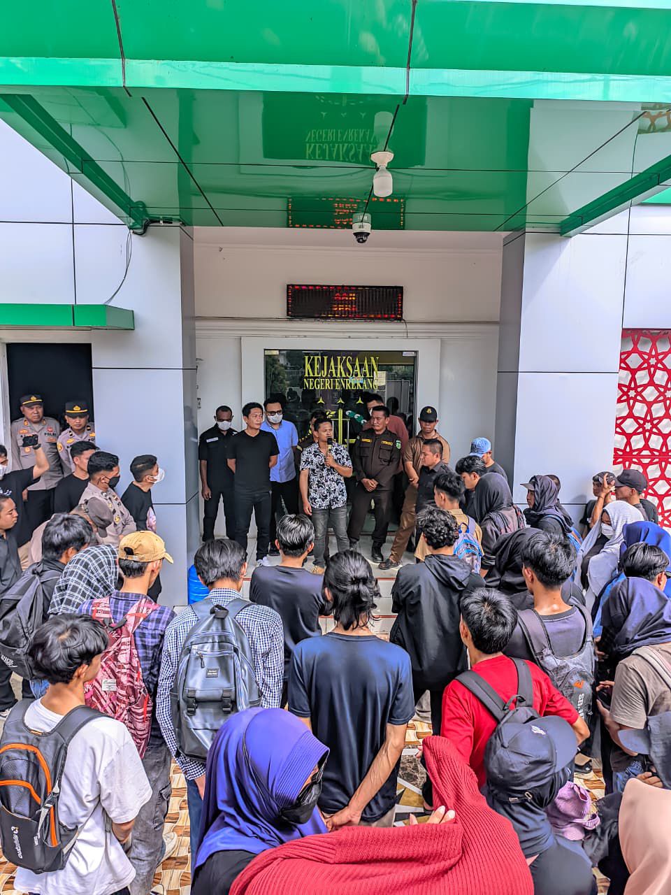 Perisaijurnalis.com, Enrekang – Aliansi Mahasiswa dan Masyarakat Peduli Enrekang menggelar aksi unjuk rasa terkait tindakan Kejakasaan Negeri Enrekang yang diduga secara sengaja menghindari dan menegasikan proses praperadilan (prapid) berunjuk ricuh dengan petugas pengamanan di kantor Kejaksaan Enrekang, Kamis (18/12/2025). Aksi berlangsung di dua titik yakni Pelataran Pengadilan Negeri Enrekang dan Kantor Kejaksaan Enrekang.