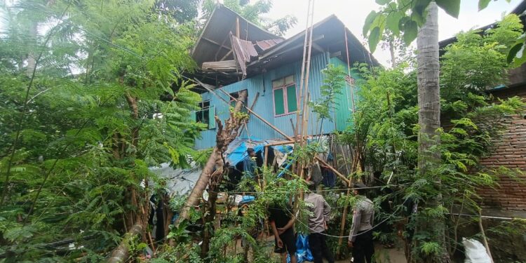 Rumah Warga di Tinambung Polman Tertimpa Pohon Kelapa