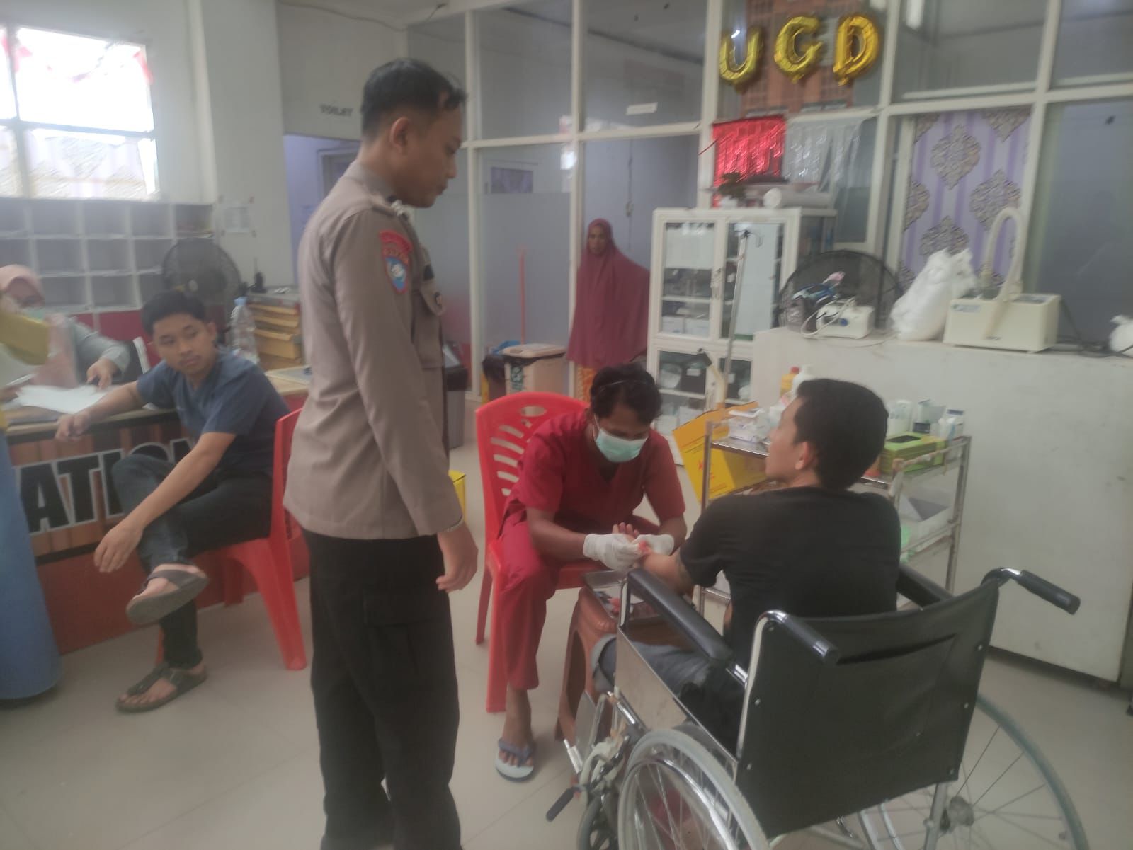 Pelaku yang mengenakan masker dan sweater hitam tersebut sempat mengambil uang tunai sebesar Rp. 500.000,- milik korban sebelum kabur. Akibat kejadian itu, korban mengalami luka tusuk pada tangan sebelah kiri.