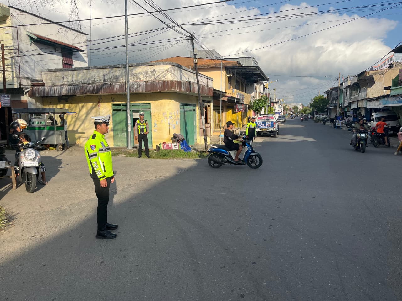 Dalam pelaksanaannya, personel Unit Siaga Sat Lantas melakukan pengaturan arus kendaraan, membantu penyeberangan masyarakat, serta memberikan imbauan tertib berlalu lintas kepada para pengendara.