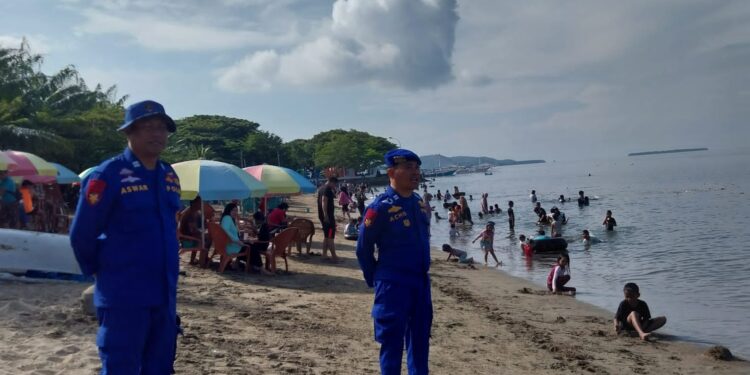 Kegiatan pengamanan dan pengawasan yang berlangsung sejak pukul 06.30 Wita tersebut dilakukan untuk memastikan keselamatan pengunjung yang memadati kawasan wisata pantai.