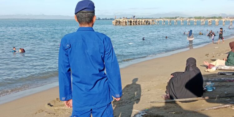Kegiatan pengamanan dimulai sejak pukul 07.00 Wita sebagai upaya memberikan rasa aman dan nyaman kepada masyarakat yang berwisata, khususnya pengunjung yang melakukan aktivitas berenang di laut.