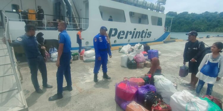 Kapal tiba sekitar pukul 12.00 Wita dan langsung disambut pengamanan oleh personel Polairud. Sebelum memasuki kapal, seluruh penumpang diwajibkan menjalani pemeriksaan tiket dan barang bawaan sebagai bagian dari prosedur keselamatan.