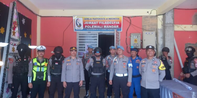Perisaijurnalis.com, Polman – Personel Satuan Samapta Polres Polewali Mandar (Polman) melaksanakan patroli pengamanan ke sejumlah gereja yang melaksanakan ibadah Natal, Kamis (25/12/2025).