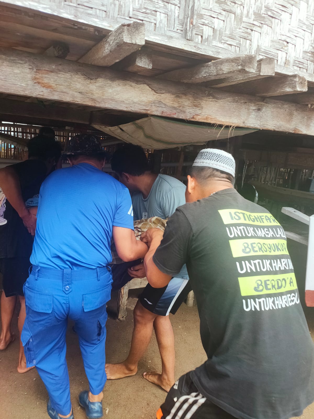 Setelah dihampiri, korban ditemukan dalam posisi terlentang di atas perahu dan sudah tidak bergerak.