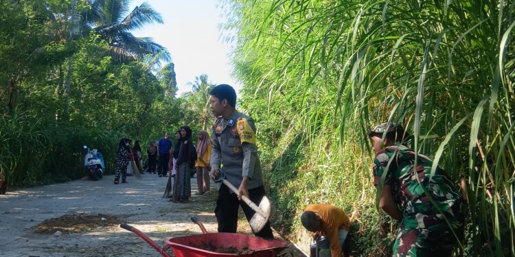 Sinergitas TNI-Polri: Bhabinkamtibmas, Babinsa, Pemerintah Desa, Dan Masyarakat Laksanakan Kerja Bakti di Jalan Poros Galung Lombok
