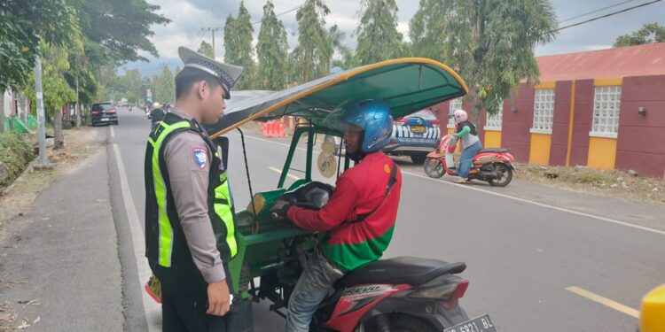 Dalam kegiatan tersebut, personel Sub Satgas Lantas Preemtif memberikan edukasi kepada pengguna jalan roda dua dan roda empat terkait pentingnya keselamatan berlalu lintas.