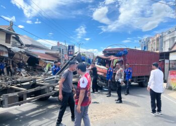Akibat Kehilangan Kendali Mobil Light Truck Toyota Dyna Menabrak 1 Mobil dan 2 Rumah Warga di Jalan Trans Sulawesi