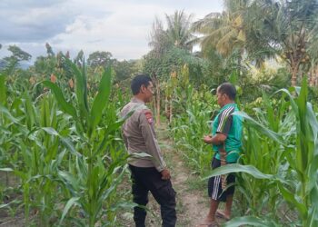 Bhabinkamtibmas Polsek Allu Tinjau Lahan Jagung Kelompok Tani Dakko Pute di Desa Saragian