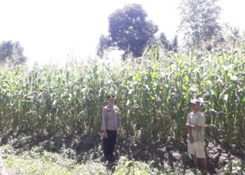 Dukung Ketahanan Pangan, Bhabinkamtibmas Polsek Tapango Pantau Tanaman Jagung Warga
