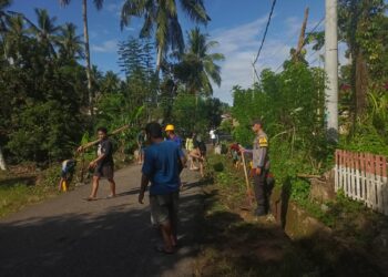 Bhabinkamtibmas Polsubsektor Anreapi Polres Polman Bersama Warga Gelar Kerja Bakti Bersihkan Drainase dan Bahu Jalan
