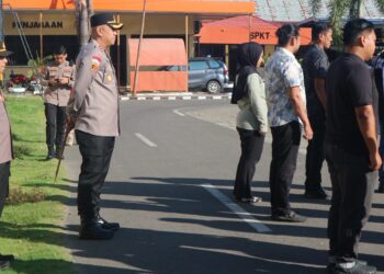 Kapolres Pinrang Lakukan Pengecekan Disiplin Personel Saat Apel Pagi