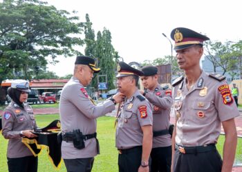 Kapolres Pinrang Pimpin Upacara Korps Raport Kenaikan Pangkat 44 Personel