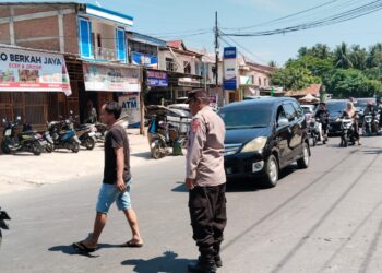 Personel Polsek Campalagian Gelar Pengamanan dan Pengaturan Lalu Lintas di Perempatan Pasar Campalagian