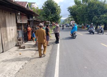 Personel Polsek Tinambung Mendatangi TKP Lakalantas Antara Pengendara Motor Dan Pejalan Kaki di Desa Tandung
