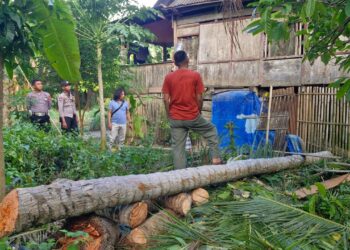 Perisaijurnalis.com, Polman - Personel Polsek Tinambung mendatangi Tempat Kejadian Perkara (TKP) pohon kelapa tumbang yang menimpa rumah warga di Desa ...