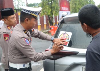 Pastikan Mudik Aman Dan Nyaman, Satlantas Polres Polman Bagikan Stiker Hotline 110