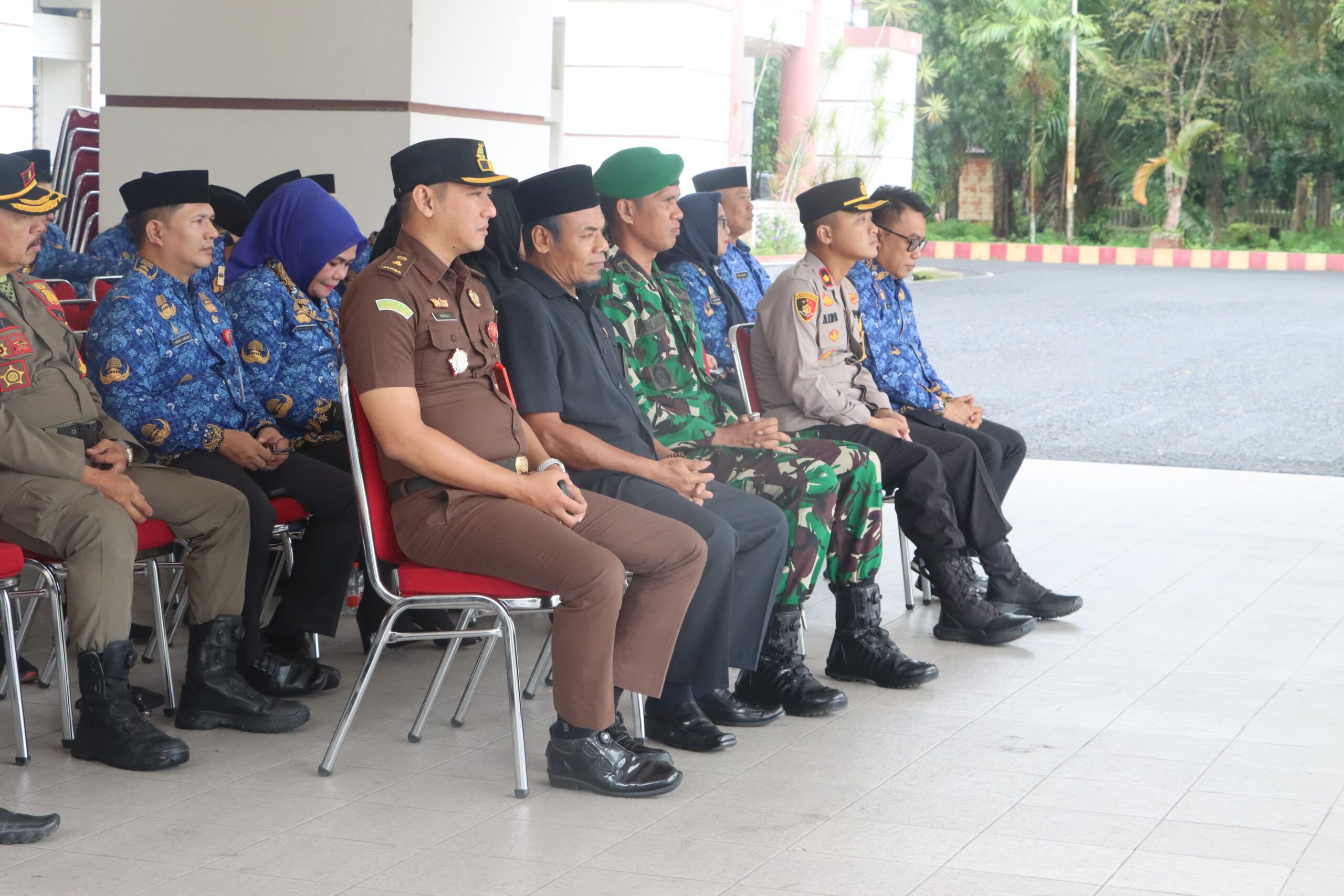 Apel gabungan ini dihadiri oleh Pj Sekda Kabupaten Polman Hamdani Hamdi S.Ip., M.Si, Dandim 1402/Polman Letkol CZI Sabar Chandra Gufta Panjaitan, mewakili Kajari Polman Angga Saputra SH, Wakil Ketua Pengadilan Kabupaten Polman Agus Salim S.Ag., M.Si, para kepala OPD Kabupaten Polman, Para camat se-kabupaten Polman, peserta apel terdiri dari perwakilan seluruh ASN /OPD Kabupaten Polman.