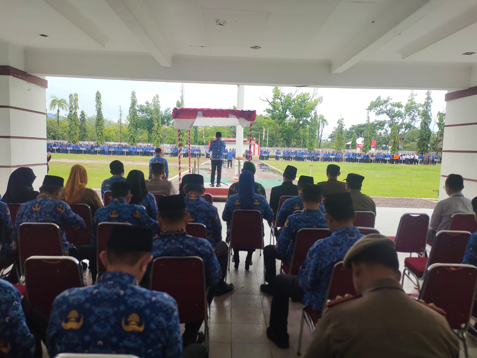 Kegiatan Apel dipimpin oleh Pj Bupati Polman Dr. H. Muhammad Hamzih, S.Ag., M.M., serta menyampaikan Pesan dan Kesan Selama menjabat PJ. Bupati di Kabupaten Polman.