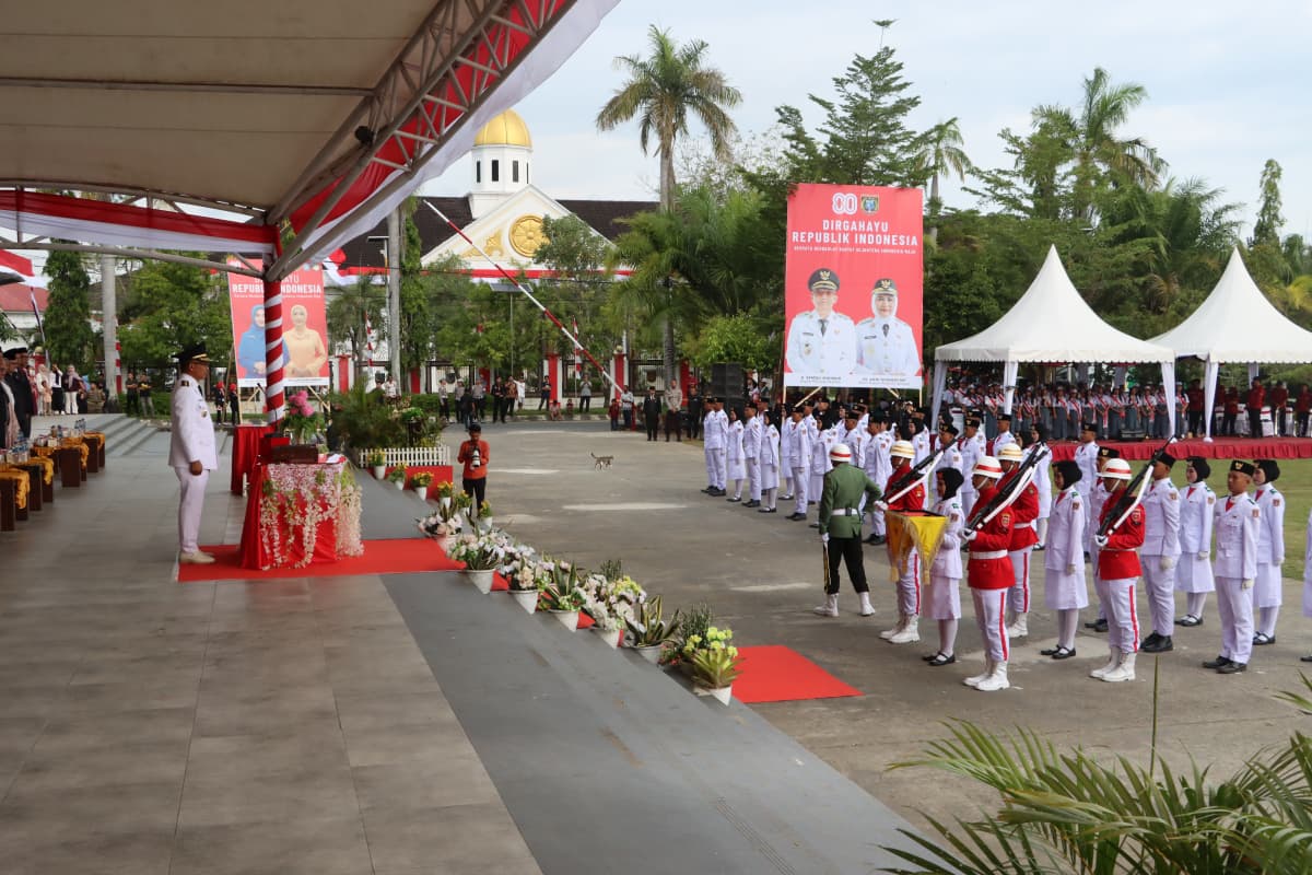 Upacara berlangsung sesuai susunan acara, diawali dengan laporan komandan upacara, penghormatan pasukan, hingga prosesi penurunan bendera Merah Putih yang dilaksanakan dengan tertib dan penuh penghormatan.