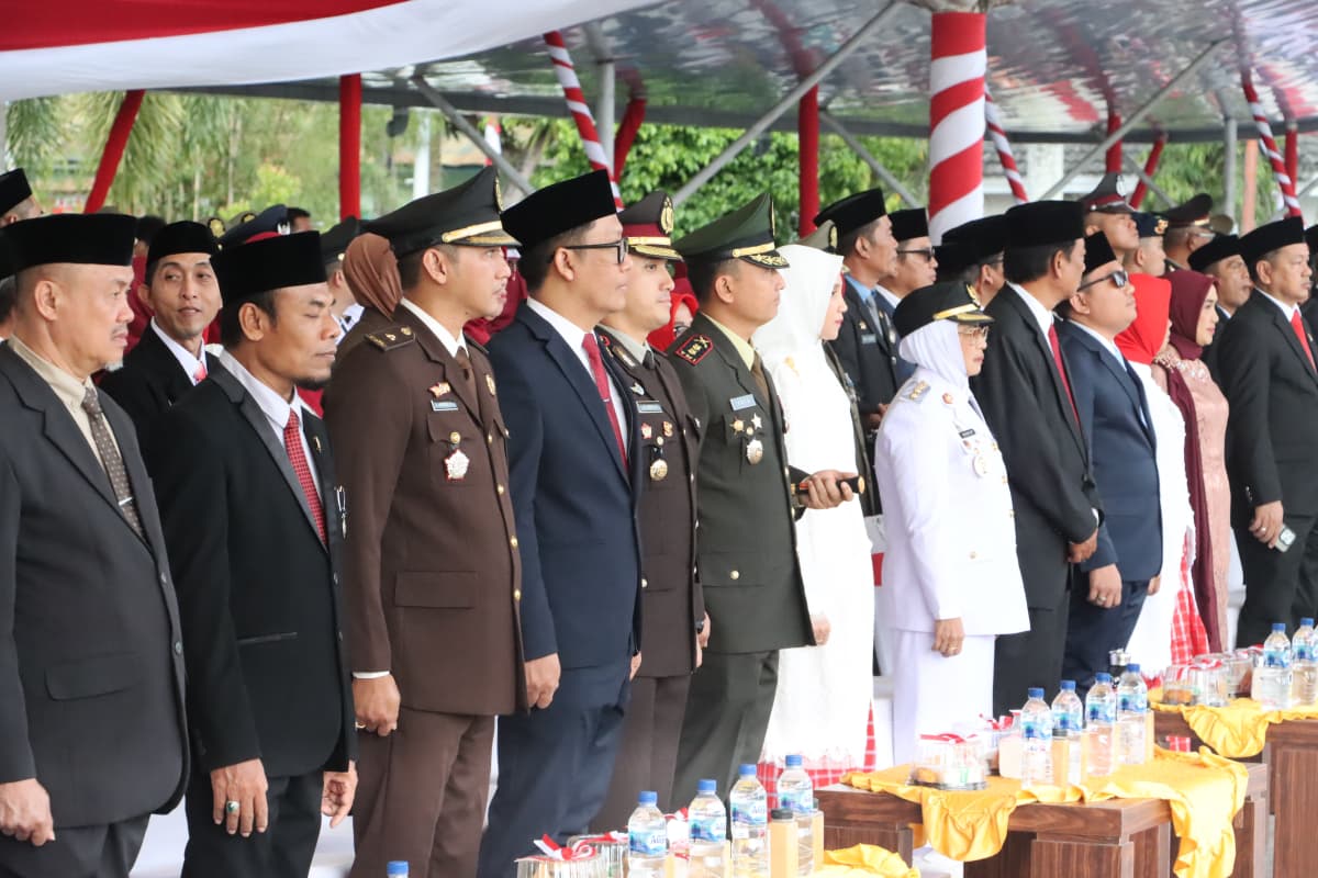 Peserta upacara terdiri dari enam kompi, melibatkan TNI-Polri, Satpol PP, Damkar, Dinas Perhubungan, ASN lintas instansi, mahasiswa, hingga pelajar tingkat SMA dan SMP.