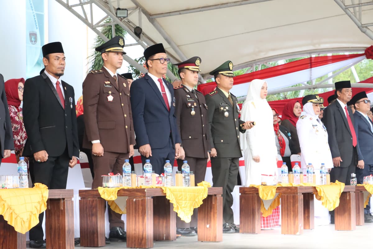 Upacara berlangsung dengan khidmat dan dihadiri oleh unsur Forum Koordinasi Pimpinan Daerah (Forkopimda), di antaranya Wakil Bupati Polman Hj. Andi Nursami, MP, Sekda Plh. H. Ahmad Safruddin, SH., MM, Ketua DPRD FahrY Fadly, SE, Dandim 1402/Polmas Letkol Inf. Anta Sihotang, Wakapolres Polman Kompol Restu Indra Pamungkas, S.T., M.Si, Kepala Kejaksaan Negeri Jendra Firdaus, SH., MH, Ketua Pengadilan Negeri Jusdi Purnawan, SH., MH, Ketua Pengadilan Agama Marwan Wahdin, S.Hi,.para Kepala OPD, serta tamu undangan lainnya.