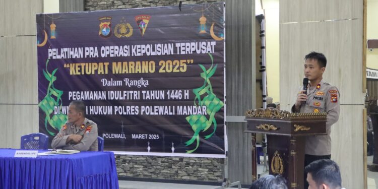 Perisaijurnalis.com, Polman – Wakil Kepala Kepolisian Resort (Wakapolres) Polman, Kompol Kemas Aidil Fitri di dampingi oleh Kabag Ops Polres Polman selalu Karendal Ops Ketupat Marano 2025 Kompol Najamuddin, memimpin Latihan Praktek (Latpra) Operasi Ketupat Marano 2025, yang digelar dalam rangka pengamanan Hari Raya Idul Fitri 1446 H/2025 M di wilayah hukum Polres Polewali Mandar yang dilaksanakan di Aula Rupatama Polres Polman Jl. Ratulangi No.17 Pekkabata Kecamatan Polewali Kabupaten Polman Provinsi Sulawesi Barat. Rabu (19/03/2025).