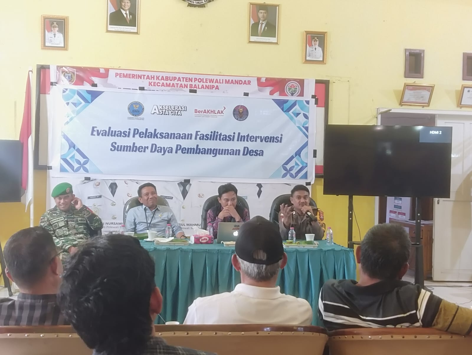 Perisaijurnalis.com, Polman – Bhabinkamtibmas Desa Pambusuang Polsek Tinambung Brigpol Iwan Setiawan mewakili Kapolsek Tinambung menghadiri kegiatan Evaluasi Pelaksanaan Fasilitasi Interview Sumber Daya Pembangunan Desa yang diselenggarakan oleh Badan Narkotika Nasional Kabupaten (BNNK) Polewali Mandar (Polman). Kegiatan tersebut berlangsung di Aula Kantor Kecamatan Balanipa, Kabupaten Polman, Provinsi Sulawesi Barat, pada Jumat (24/10/2025).